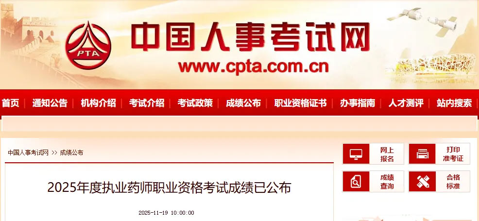 登录系统后选择参加考试的时间(2025年)以及考试名称(执业药师),进行成绩查询(见下图)。