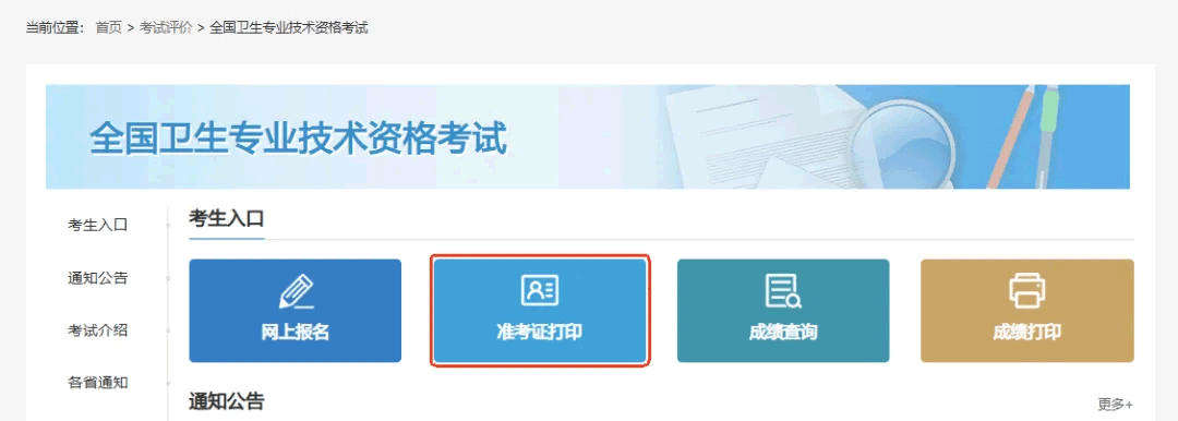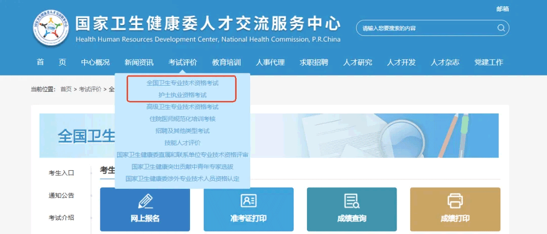 1、在「考试评价」栏目中选择「全国卫生专业技术资格考试」