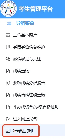 4、点击左侧导航栏「准考证打印」,在考试列表中选择考试项目,按步骤打印即可。