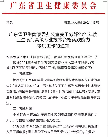 广东省卫生专业技术资格正副高实践能力考试通知来了,作为历年考试人数最多的省份,很多考生等待这份通知已久,具体文件内容如下: