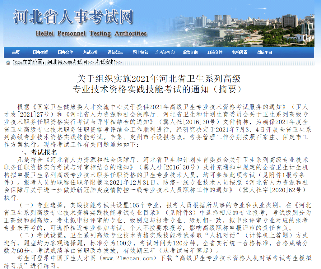 河北省人事考试网发出关于2021年省直卫生系列高级职称专业技术资格考试的通知!