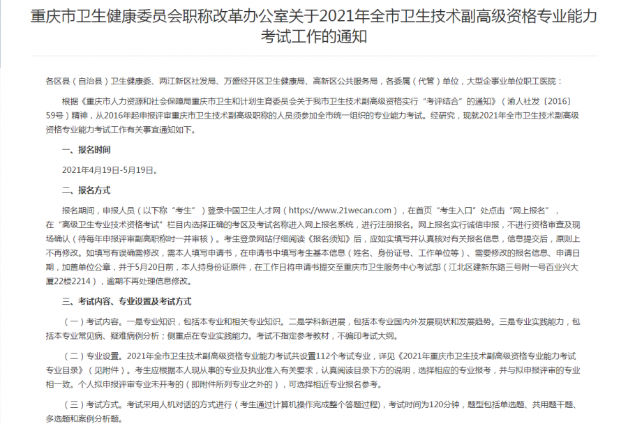 重要通知:2021年高级职称重庆卫生高级考试文件如下: