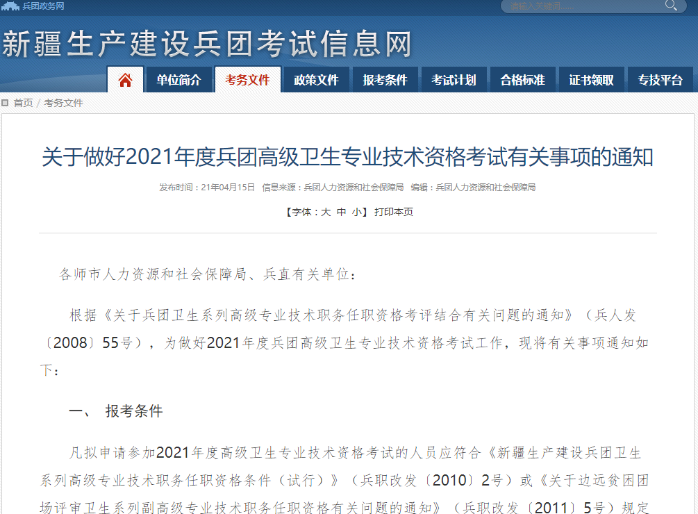 新疆兵团发出关于2021年省直卫生系列高级职称专业技术资格考试的通知!