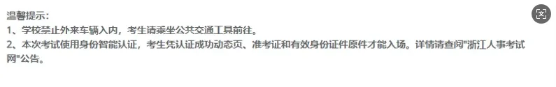 浙江执业药师准考证温馨提示中也明确: 本次考试使用身份智能认证,考生凭认证成功动态页、准考证和有效身份证件原件才能入场 。详情请查阅'浙江人事考试网“公告。