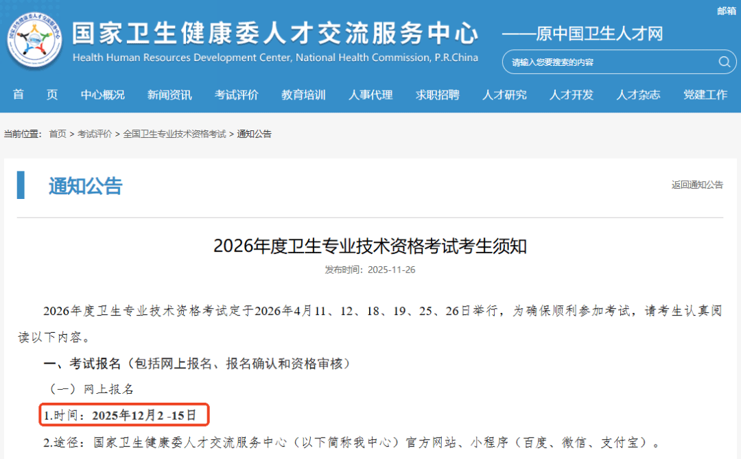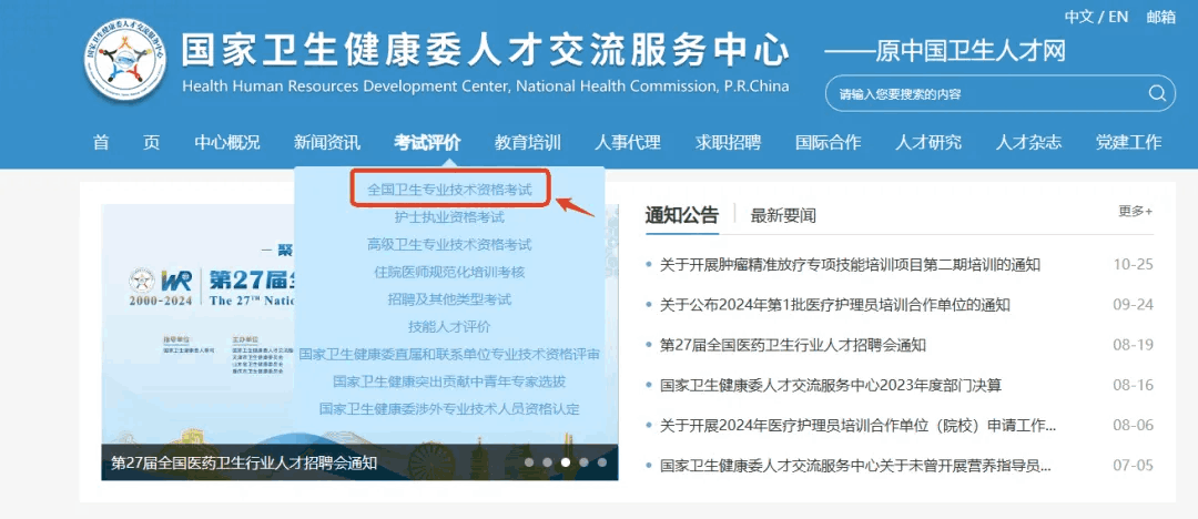 1. 登录 国家卫生健康委人才交流服务中心官方网站 ( www.21wecan.com),进入“卫生专业技术资格考试”。